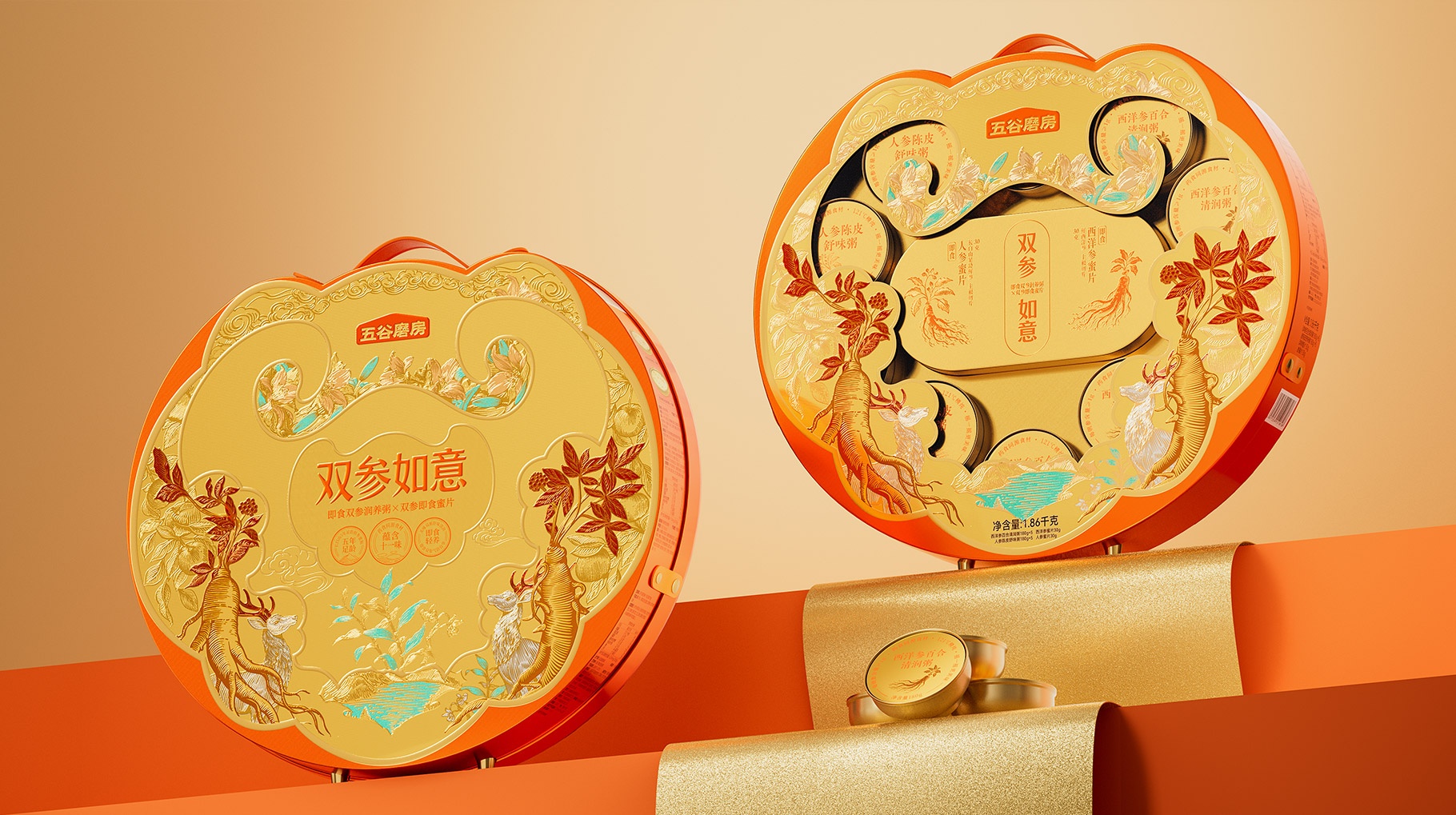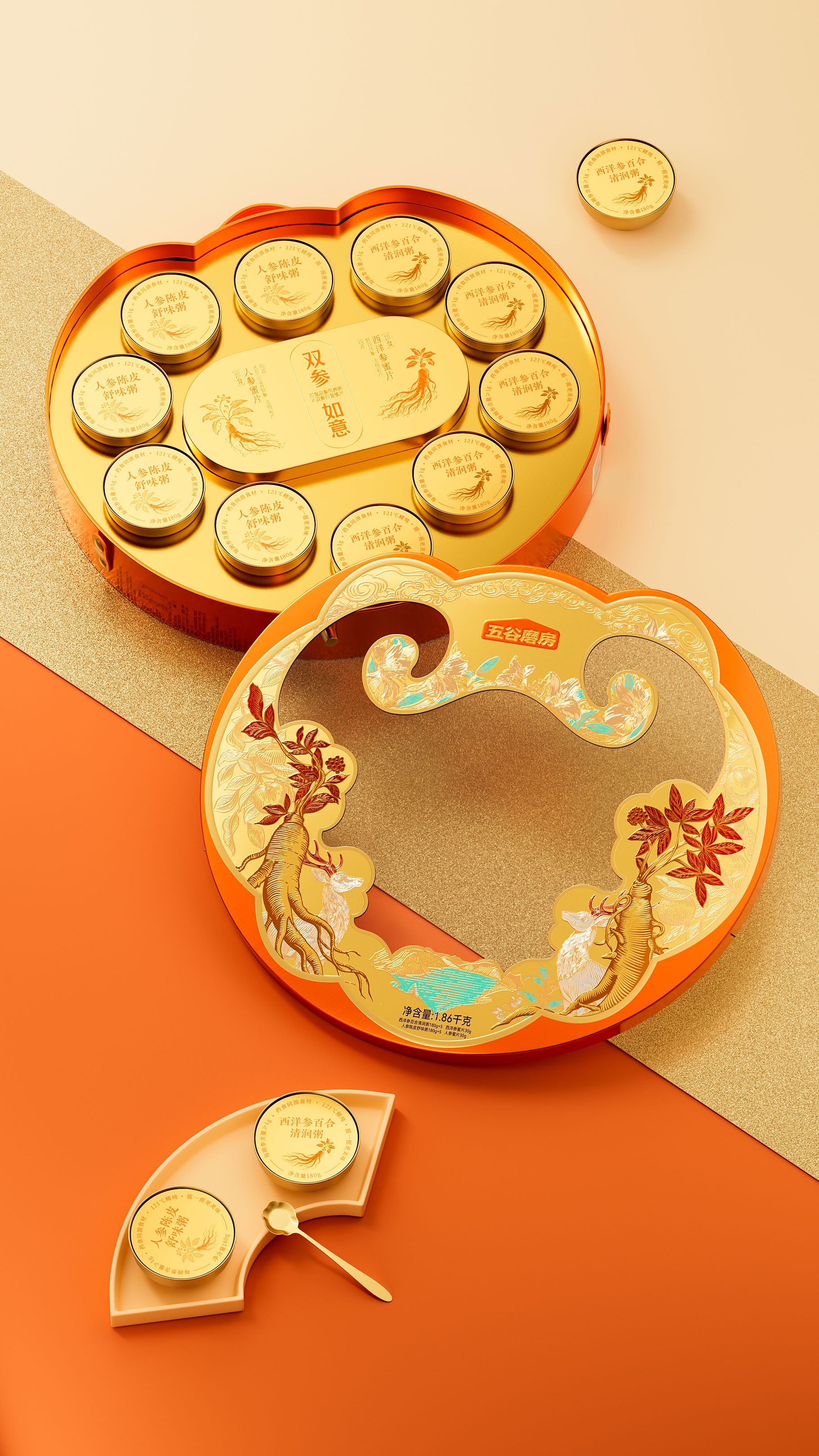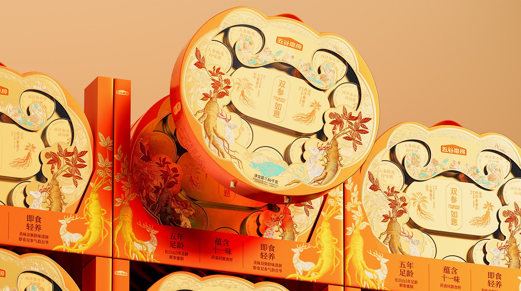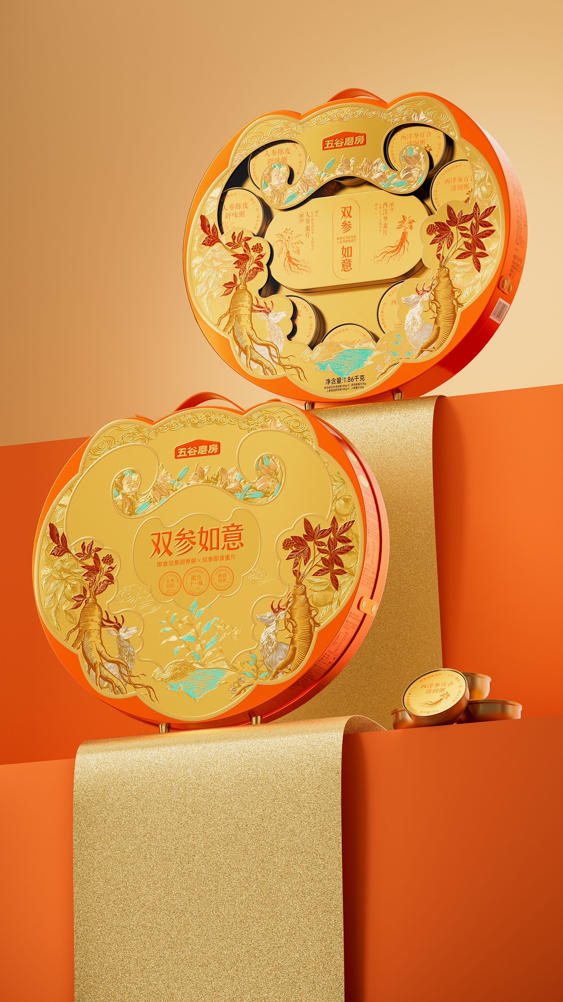 ?五谷磨房,雙參如意禮盒設(shè)計,山姆新年禮盒設(shè)計