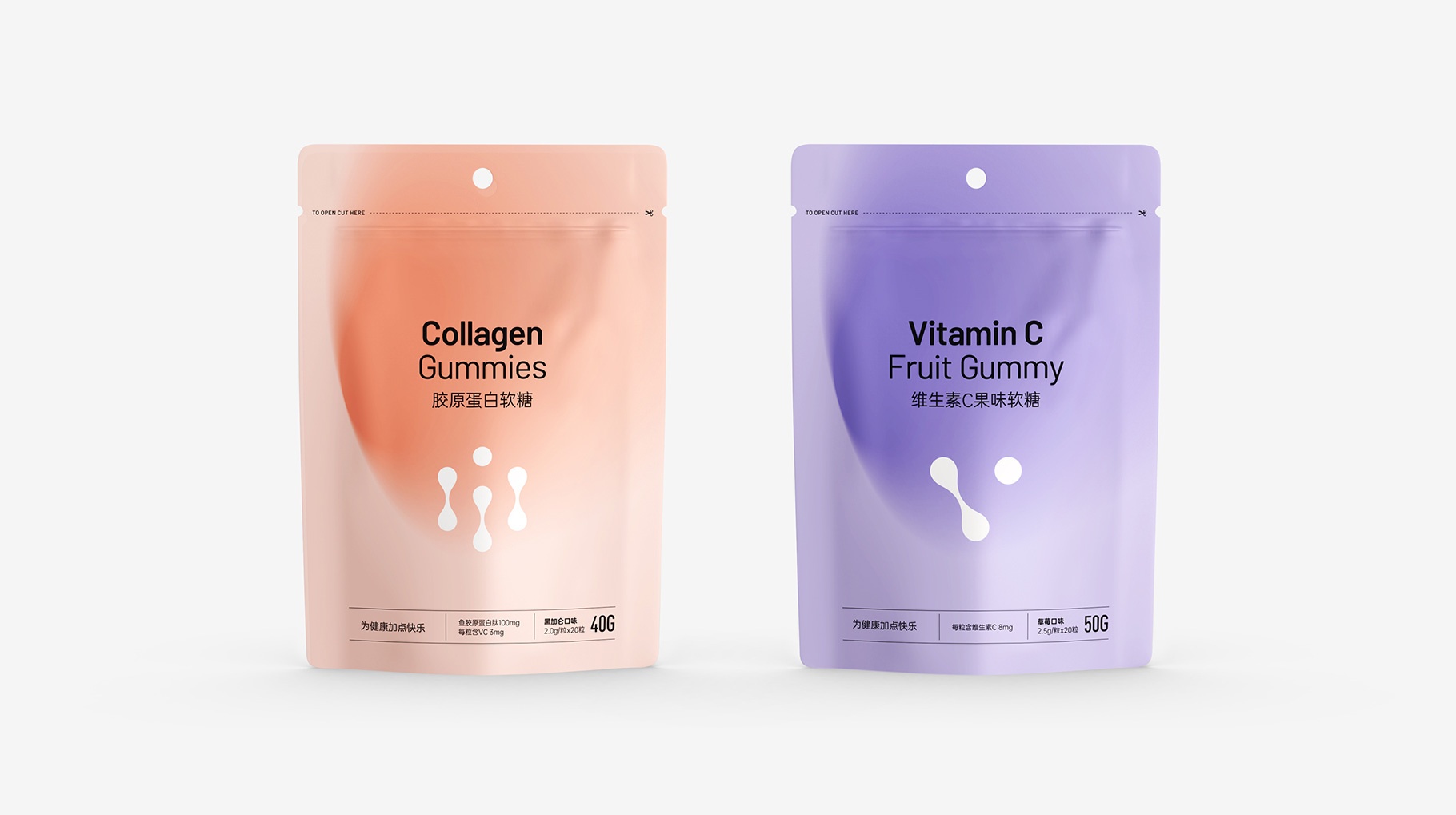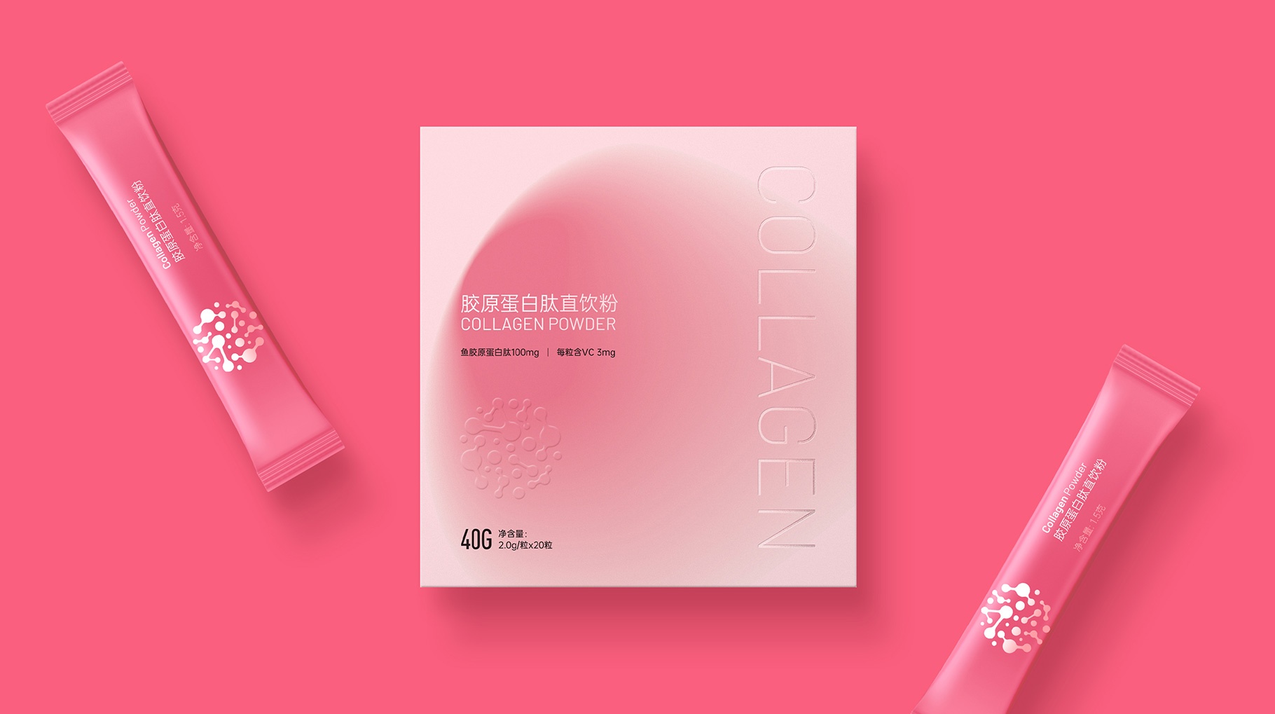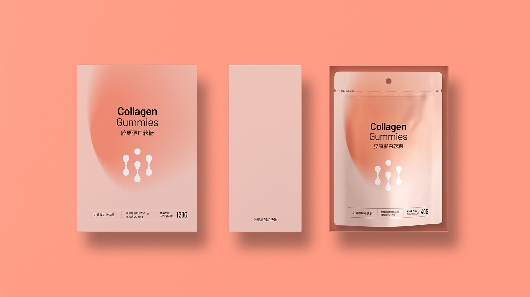 膠原蛋白肽直飲粉、膠原蛋白軟糖、維生素C果味軟糖,產品包裝設計