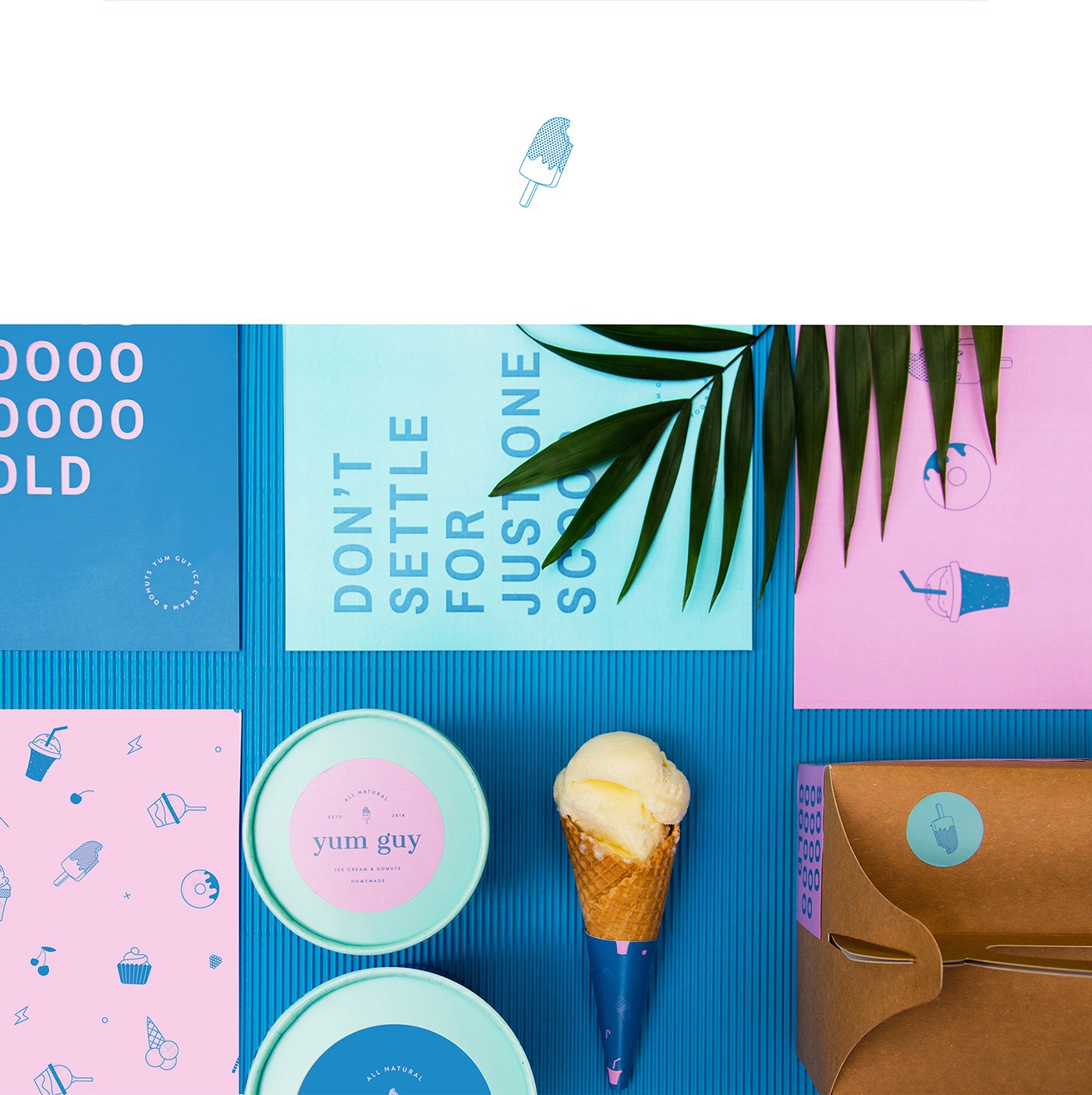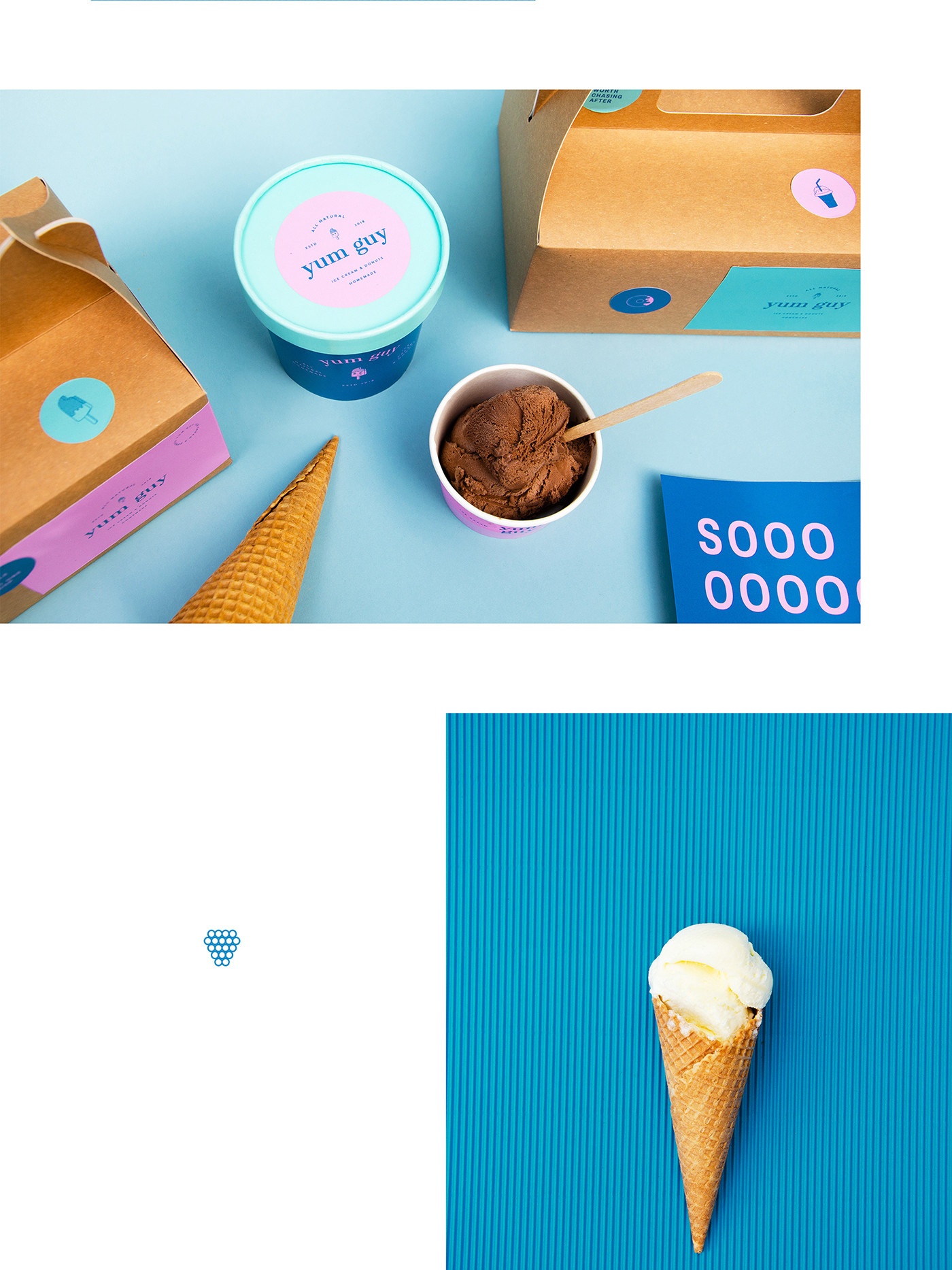 Yum Guy雖然是一家初創公司,但創始人已經銷售兩年的無名冰淇淋,也因此認識到良好品牌的重要性,塑造品牌視覺形象的迫切性。項目的挑戰在于如何用高質量的原料制作冰淇淋,并說服人們真正購買它們,認同他們。