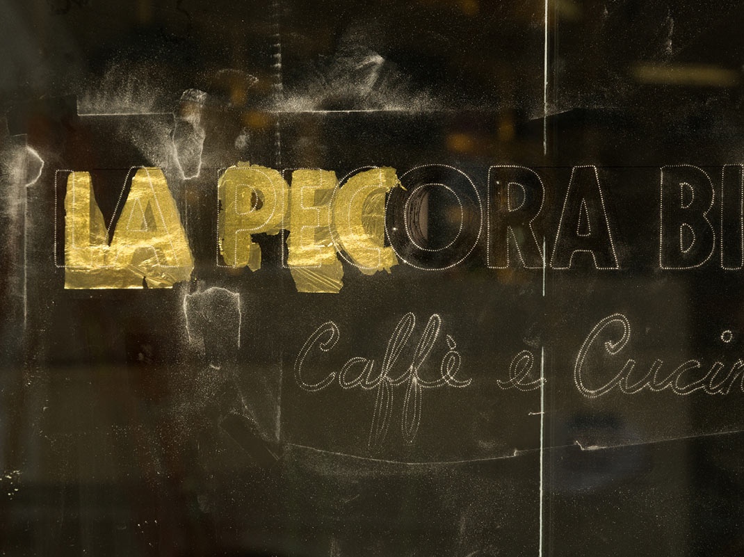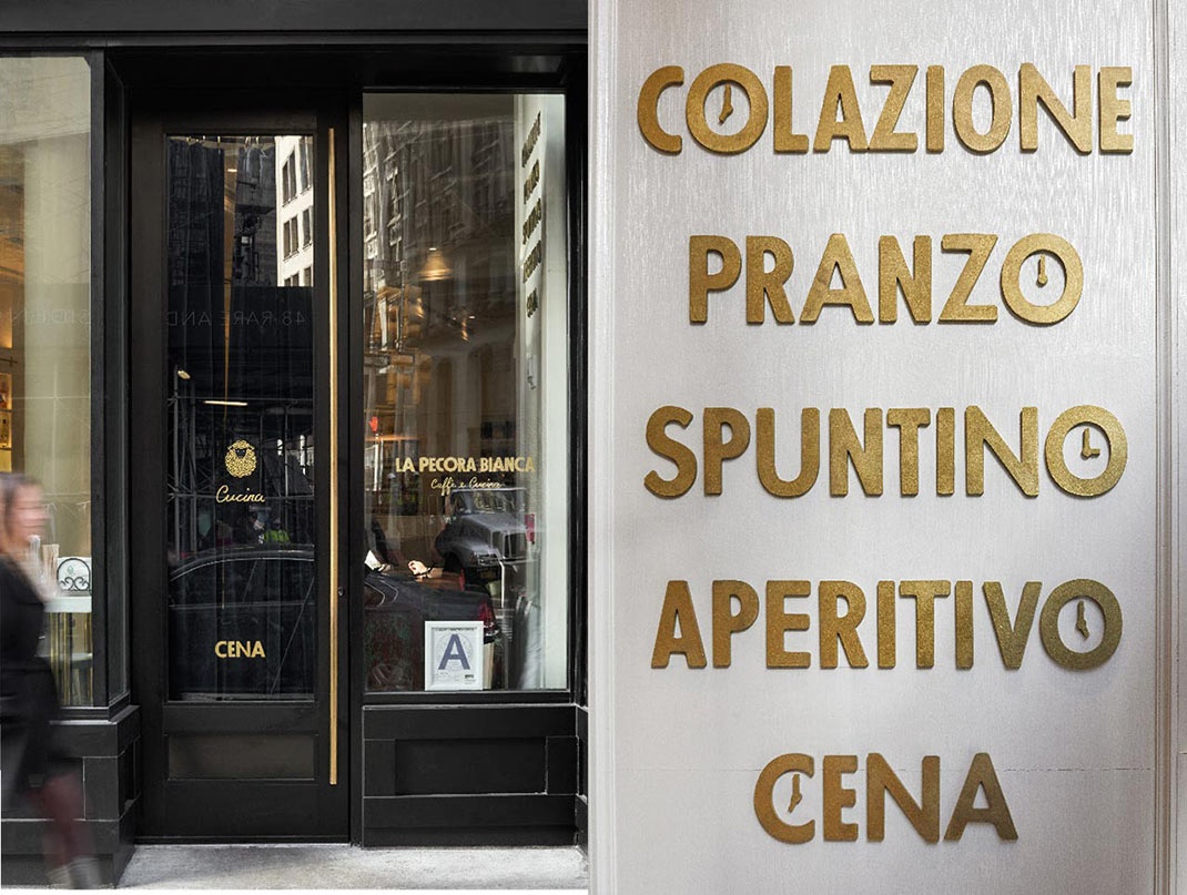 富圖拉的精確幾何形狀讓位于富圖拉帕薩塔更柔和、更粗糙的木刻線條,這是一種參照歐洲咖啡館和餐廳標(biāo)牌的選擇,并在通常的兩種寬度的組合中獲得進(jìn)一步的區(qū)別和特征。這一選擇緩和了主題的直截了當(dāng)?shù)念B皮品質(zhì),但對(duì)松散的線條和人性化的品質(zhì)也有類似的偏好。