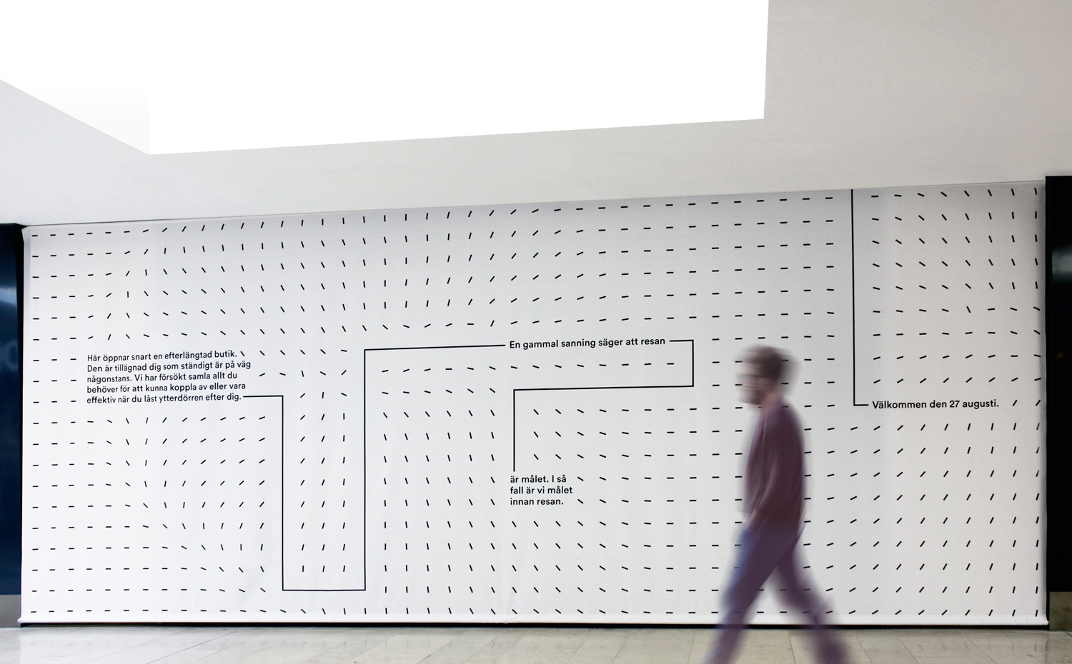 這些線條的輕盈但密度與徽標的厚重和堅固品質形成了對比,但同時也有利于單線,并添加了整齊的紋理和運動感以進行打印。這些波浪以一種有趣和令人信服的方式應用于霍廷斯,就像空氣正沿著旅行者的路徑被吸走和扭曲,并連接著信息。