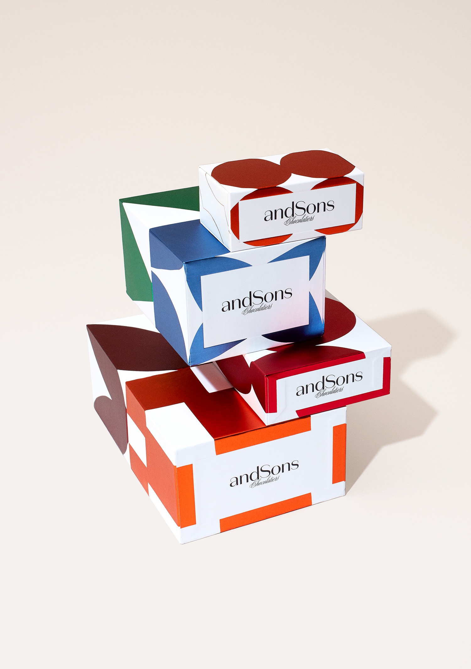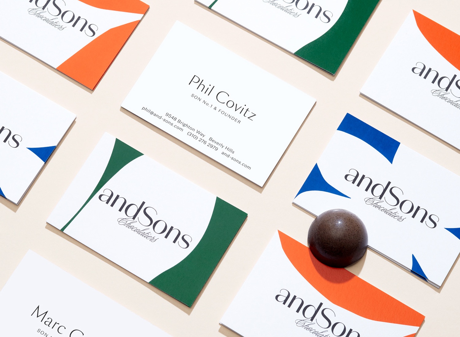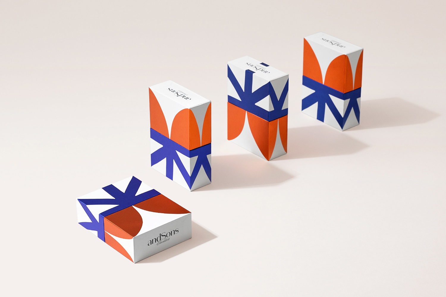 品牌標志清楚地傳達了差異,暗示了對巧克力的新觀點。大膽的形式和顏色可用于表達意想不到的風味組合,其中巧克力的形狀與任何其他巧克力保持器非常相似。在AndSons零售空間的背景下,包裝很可能是現成的預包裝禮品,也可以作為在柜臺上選擇單個巧克力的容器。彩色塊狀箔片 使其遠離熟悉的金色,同時保持一種獨特和奢華的感覺,喚起加州人的溫暖,并融入現代奢華的視覺語言。