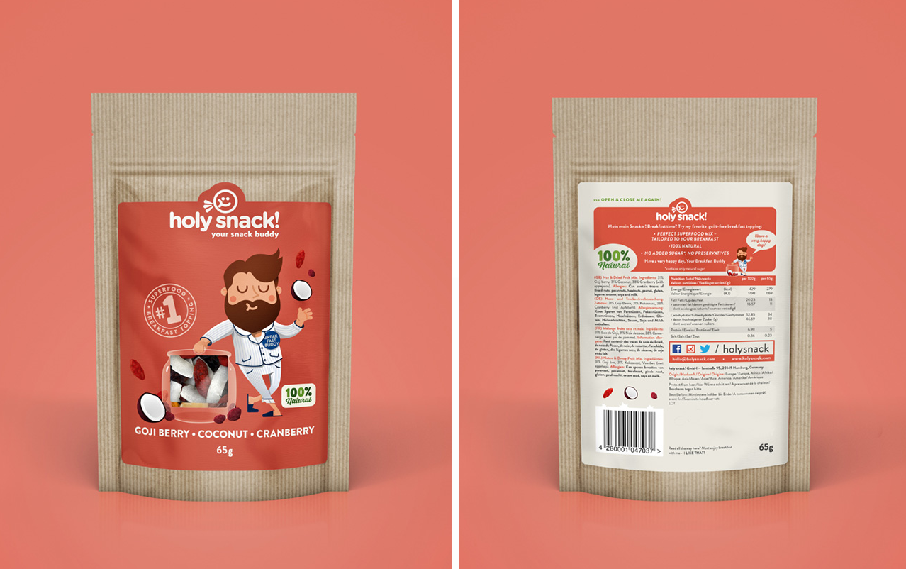 瑞士超級食品專家Holy Snack創建了新的包裝標識。 神圣的零食是小吃的最佳方法。 精心設計的食譜對您的身體和身心都有真正的促進作用,不僅可以支持而且可以改善您的日常生活。